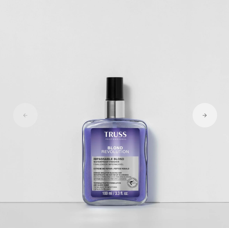 BLOND REVOLUTION IMPASSABLE BLOND Producto de acabado con efecto protector y antifrizz que restaura el brillo y la suavidad del cabello. Impermeabiliza hasta 5 lavados, ofreciendo protección térmica de hasta 230°C. Sus ingredientes activos se potencian con el calor, garantizando un acabado de brillo espejo. Modo de uso: Aplicar sobre el cabello limpio y húmedo antes del secado o sobre el cabello seco después del peinado para un acabado brillante y sin frizz. Mantén tu rubio impecable con la línea completa de Blond Revolution.