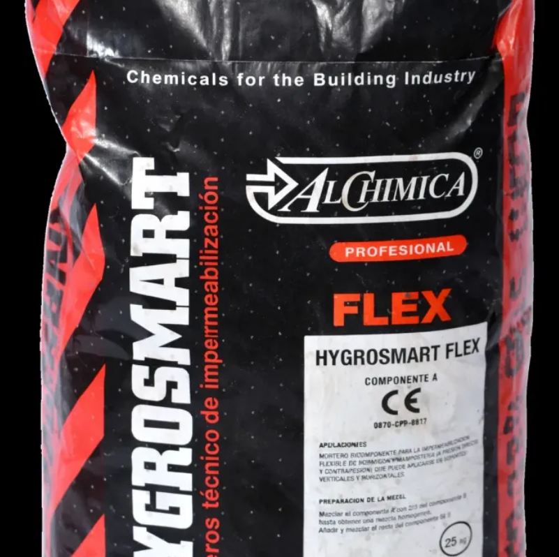 HYGROSMART FLEX es un mortero bicomponente para la impermeabilización flexible de hormigón y mampostería, apto para presión directa y contrapresión. Forma una capa continua y resistente ideal para estructuras sometidas a humedad constante.